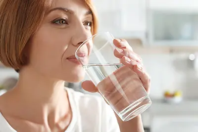 Water is necessary for many bodily functions. It specifically plays a role in the production of elastin and collagen, both of which are needed to produce youthful, glowing skin. Aim to have at least eight cups of water each day to stay hydrated and help keep your skin hydrated, too.
