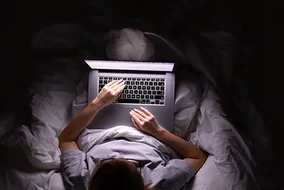 Blue lights, which are found on device screens, can be especially problematic, since blue is of the same wavelength as produced by full daylight, and it tricks the brain into thinking it is still daytime. Exposing the brain to this wavelength late in the day will push the production of melatonin later and means less hours are spent in sleep.[xiii], [xiv]
