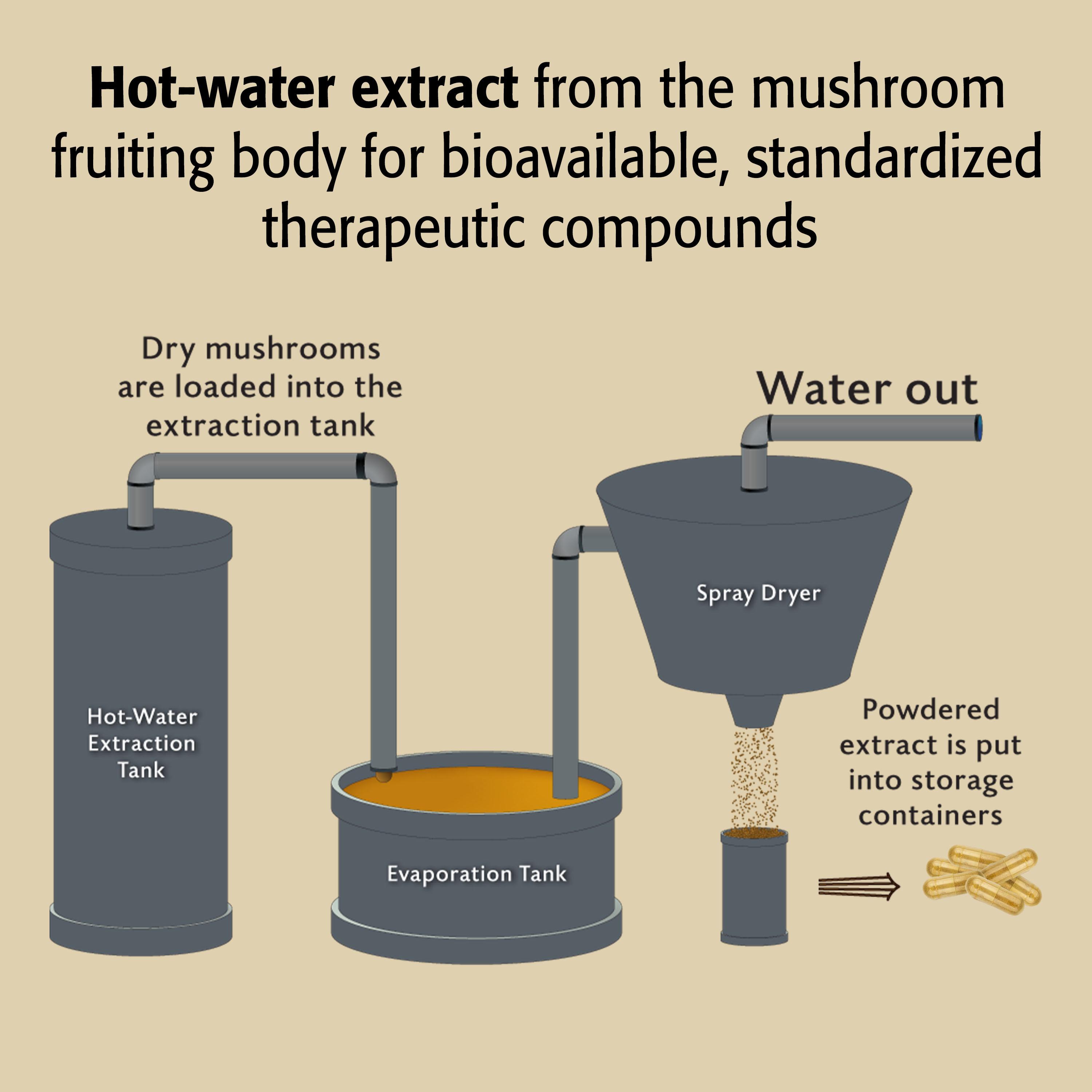 • Hot-water extract allows bioavailabity and absorption of therapeutic polysaccharides and beta-glucans