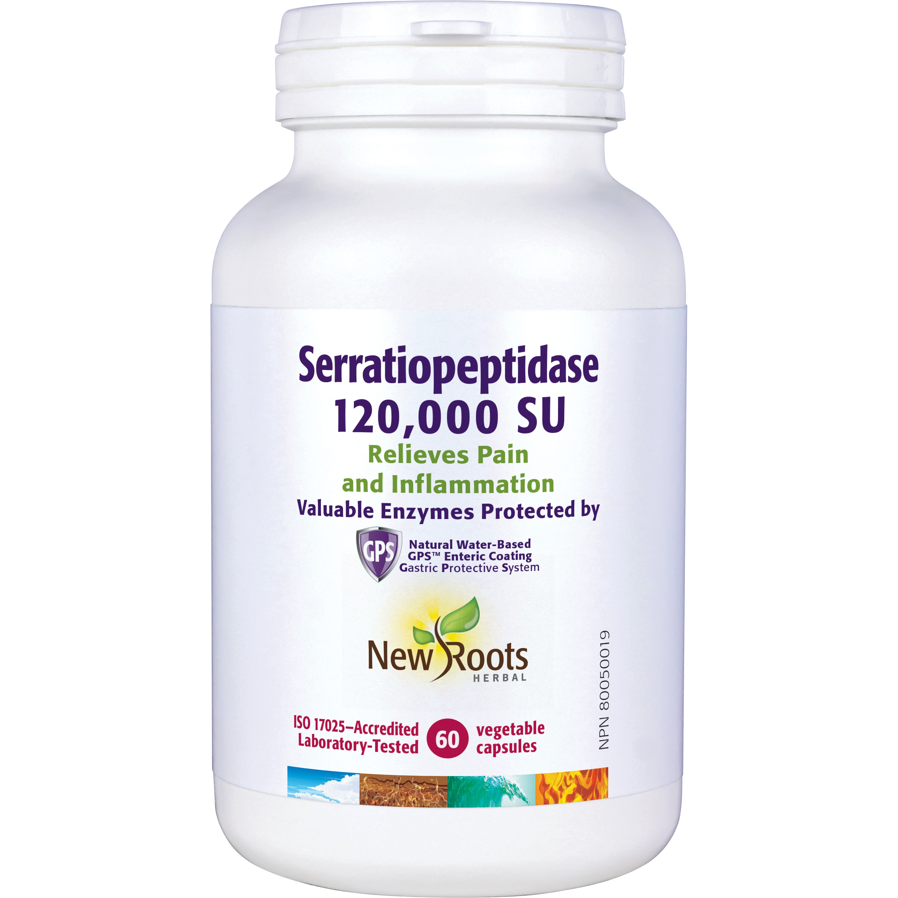 Each enteric-coated capsule delivers 120,000 FCC SU of serratiopeptidase that break down nonliving tissue to speed healing and reduce pain-causing inflammation.