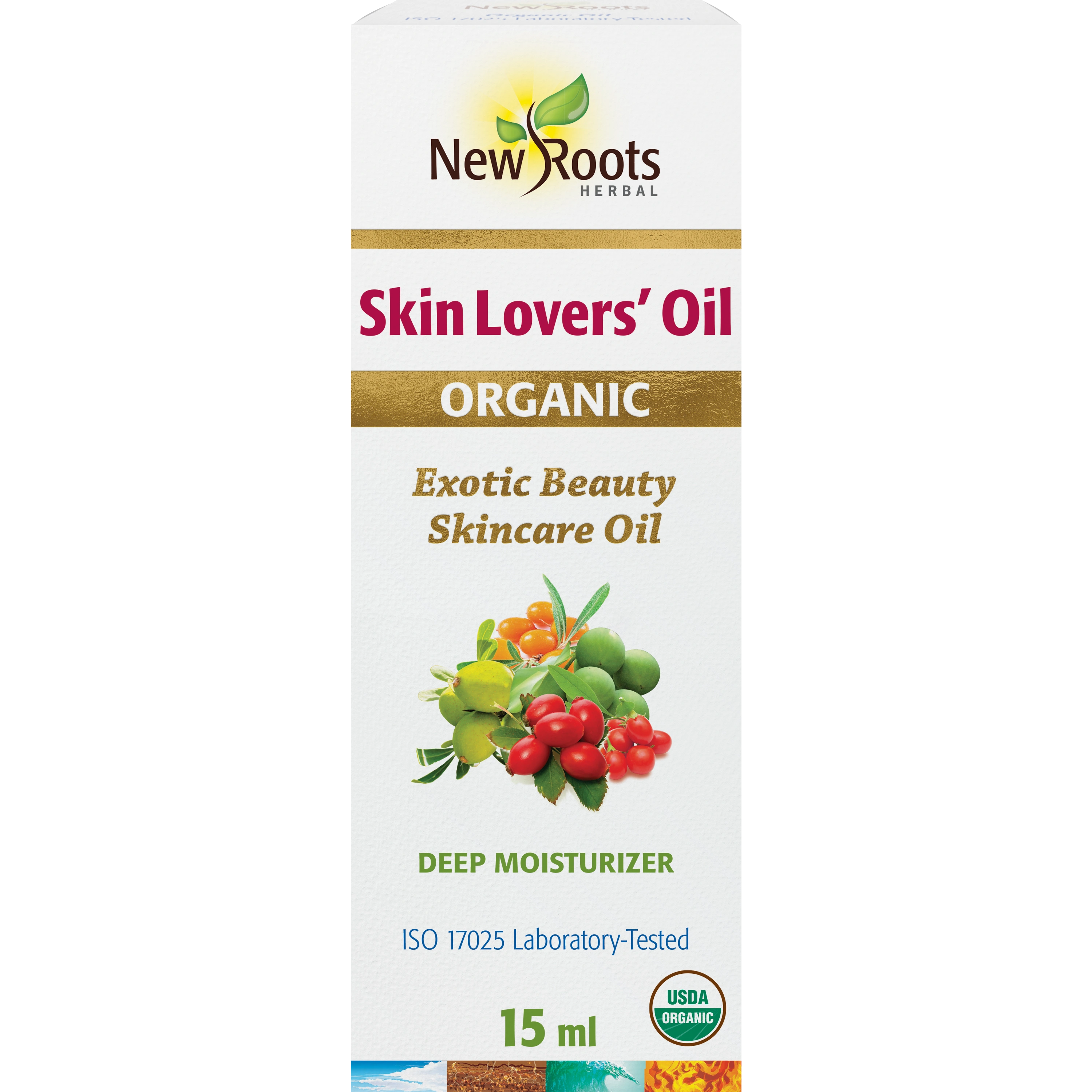 Ingredients: Organic Lycium barbarum seed oil, organic Rosa rubiginosa / Rosa moschata seed oil, organic Hippophae rhamnoides seed oil, organic Argania spinosa seed oil, organic Vaccinium macrocarpon seed oil, organic Calophyllum inophyllum seed oil, and organic Rosmarinus officinalis (rosemary) leaf extract.