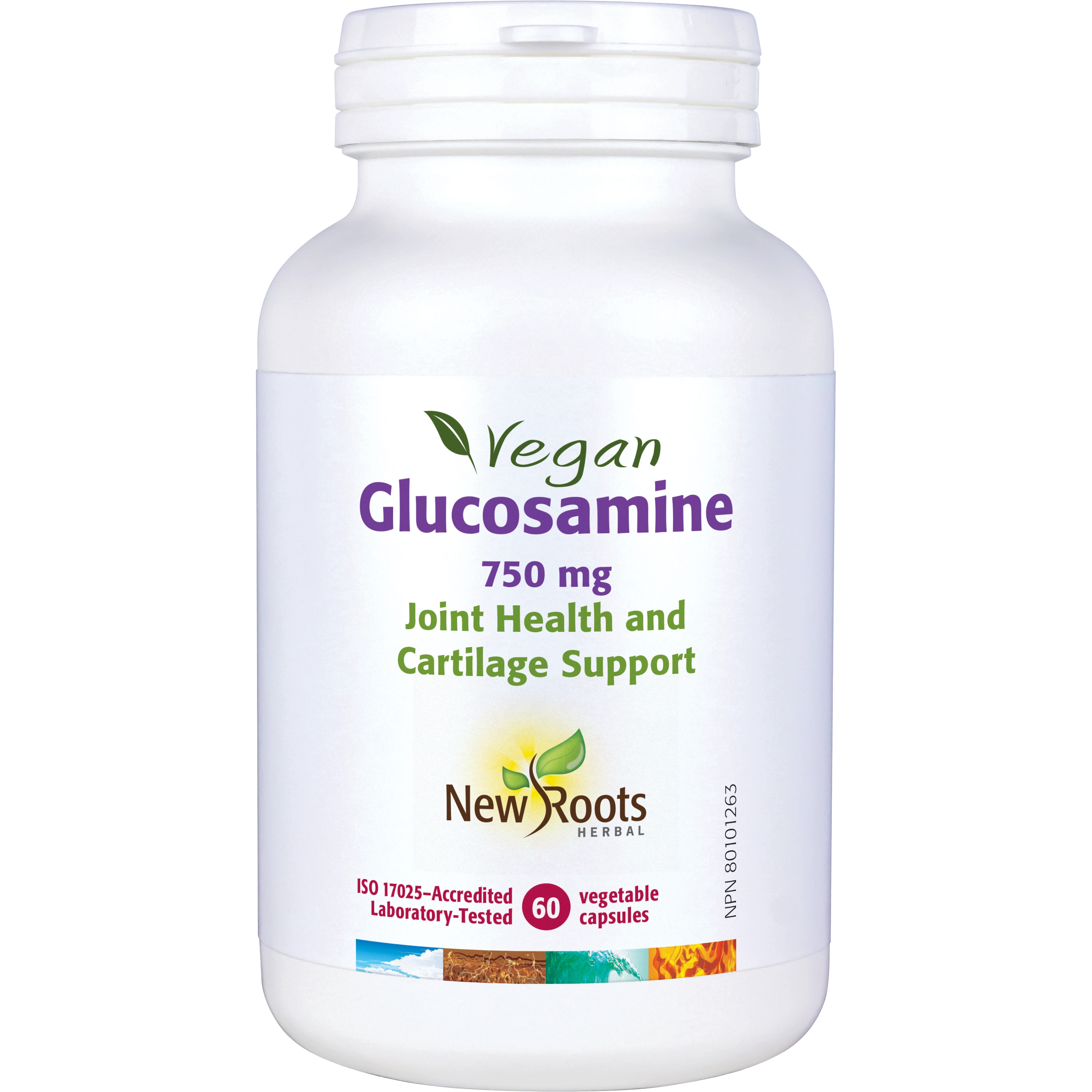 New Roots Herbal’s Vegan Glucosamine delivers 750 mg per vegan-compliant capsule for twice-daily dosage.