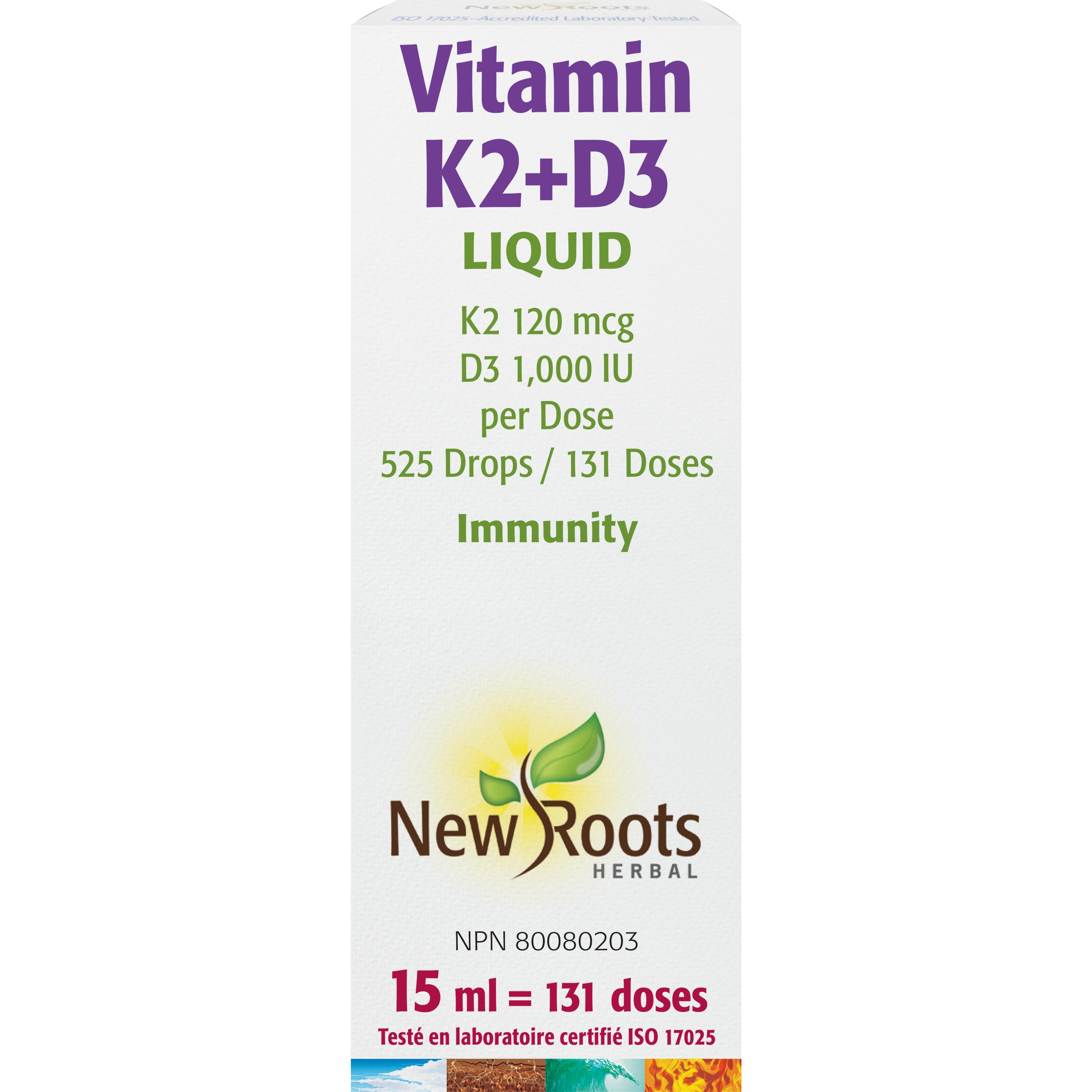 Liquid · K2 120 mcg · D3 1,000 IU per Dose · 525 Drops / 131 Doses